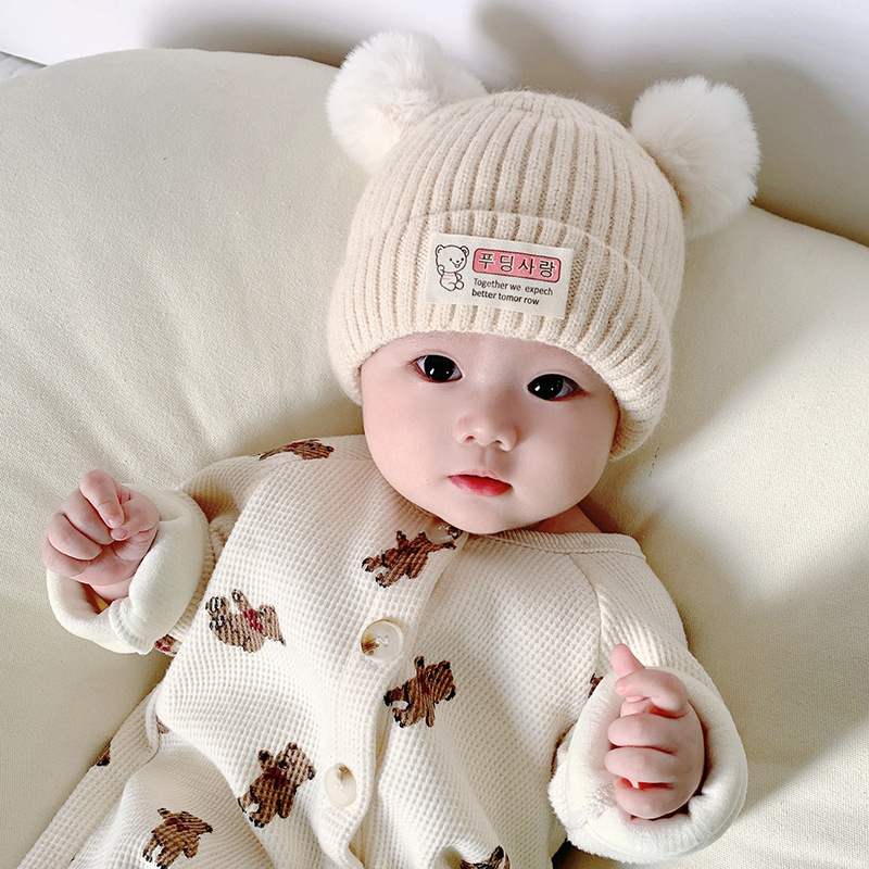2024韓国版子供用ニット帽新生児厚手帽子保温帽毛糸帽子かわいいベビー帽卸売