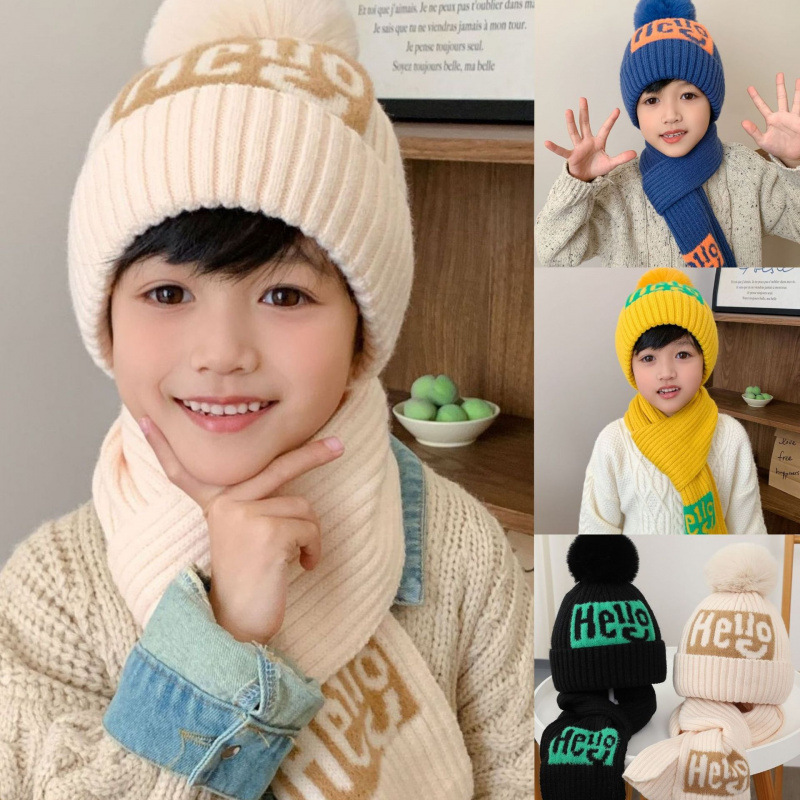 秋冬の新型子供帽子男女の大人のニット帽のマフラー二点セットの厚い保温帽子セット