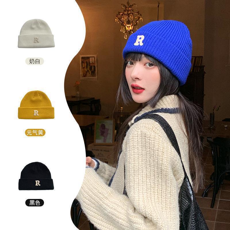 2024新型アルファベットR標ニット帽男女毛糸帽秋冬百合保温日系ネット赤同種帽