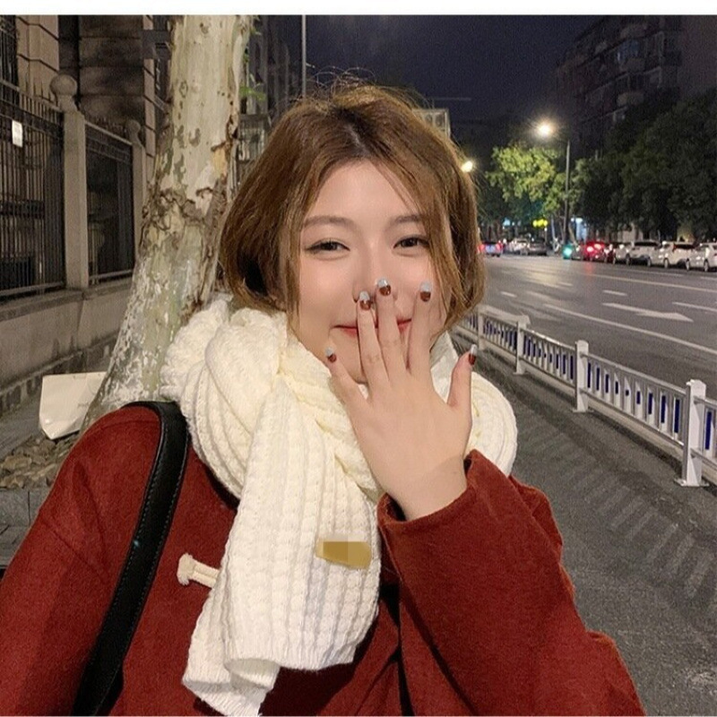 2024韓国版新型ソフトモチモチとしたニット毛糸純色マフラー女子秋冬学生はカップルのマフラーを厚くした