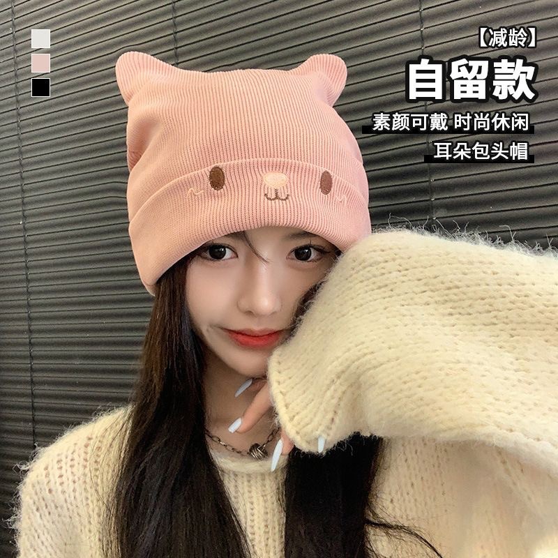 Ins女子秋冬大頭囲スタッカ帽子カジュアル学生帽かわいい猫ソフト妹毛糸ニット帽子月子帽