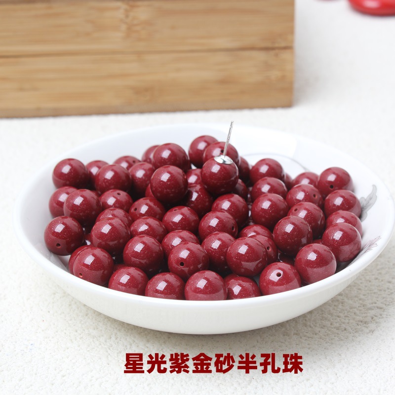 工場直売天然原鉱半孔朱砂散珠半孔紫金砂丸珠ピアスペンダント素材