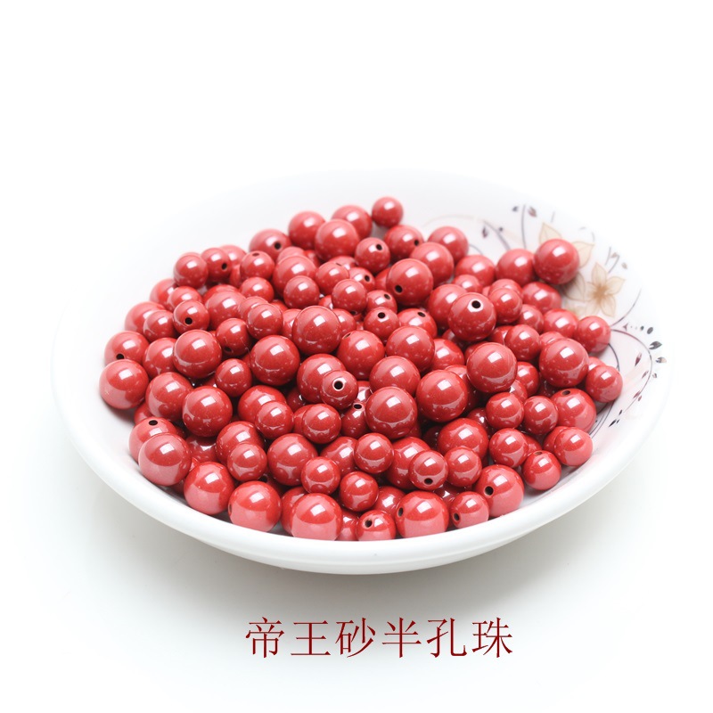 朱砂半孔珠散珠ピアス原材料卸売り高含有量帝王砂半孔丸珠ピアス原料