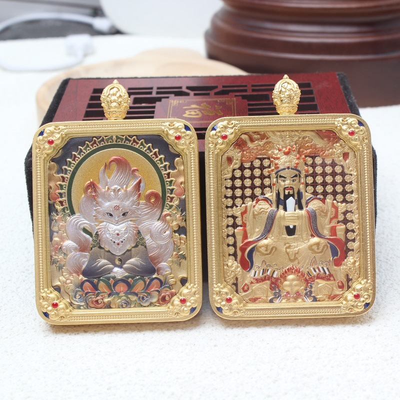 新品セイコー龍五爺S九尾狐両面立体唐カードペンダント真鍮金九尾狐唐カードペンダント