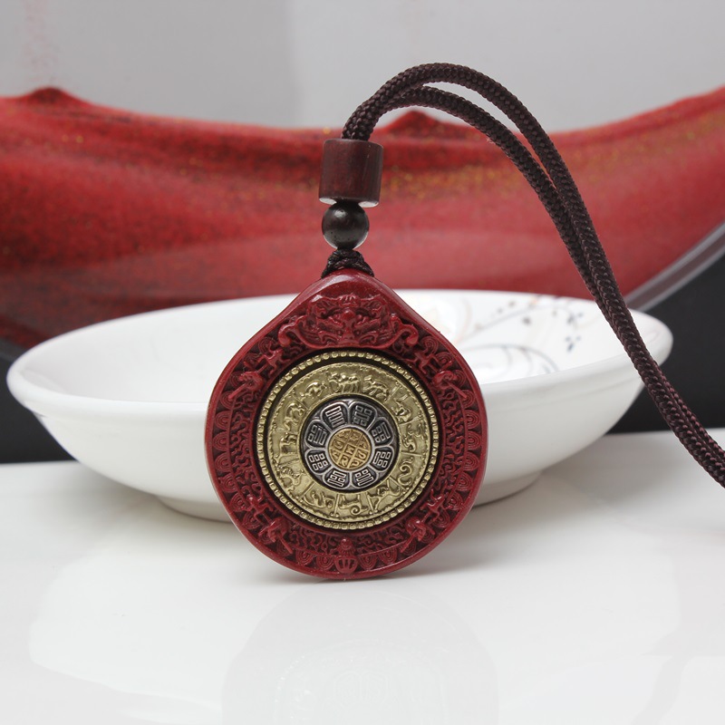 天然原鉱朱砂チベット式九宮八卦ペンダントネックレス男女八宝ペンダント十二生肖本命年