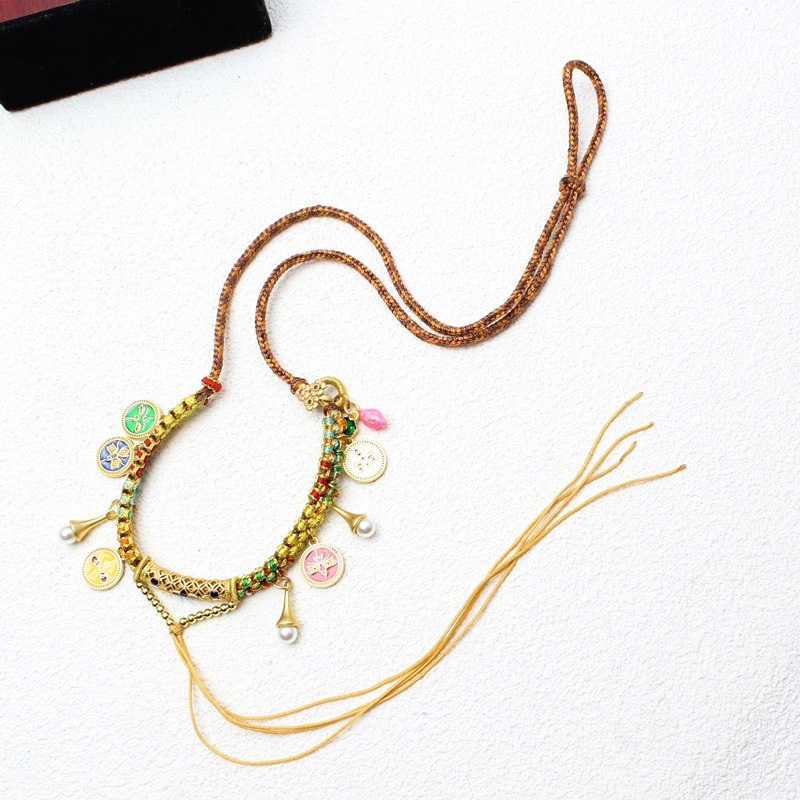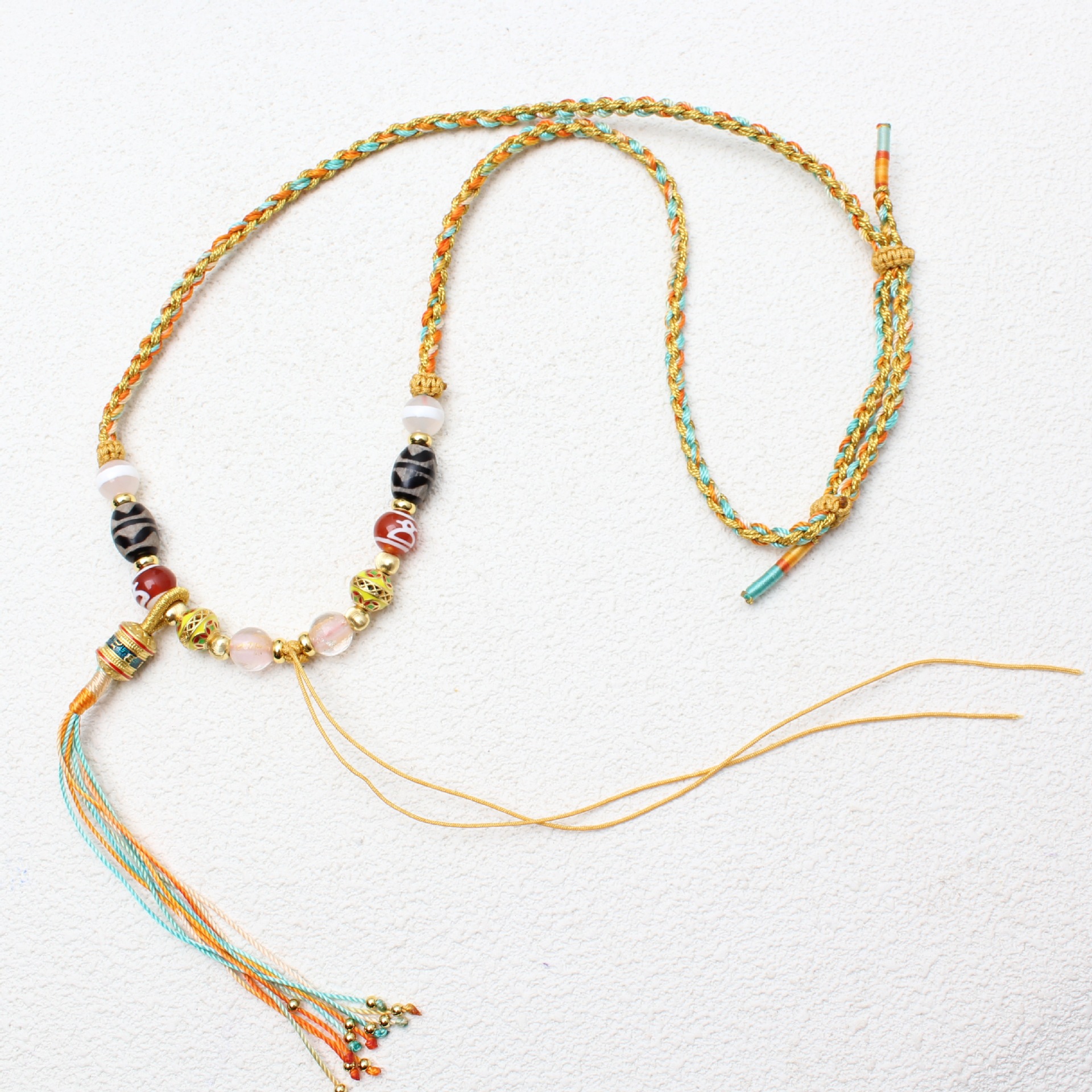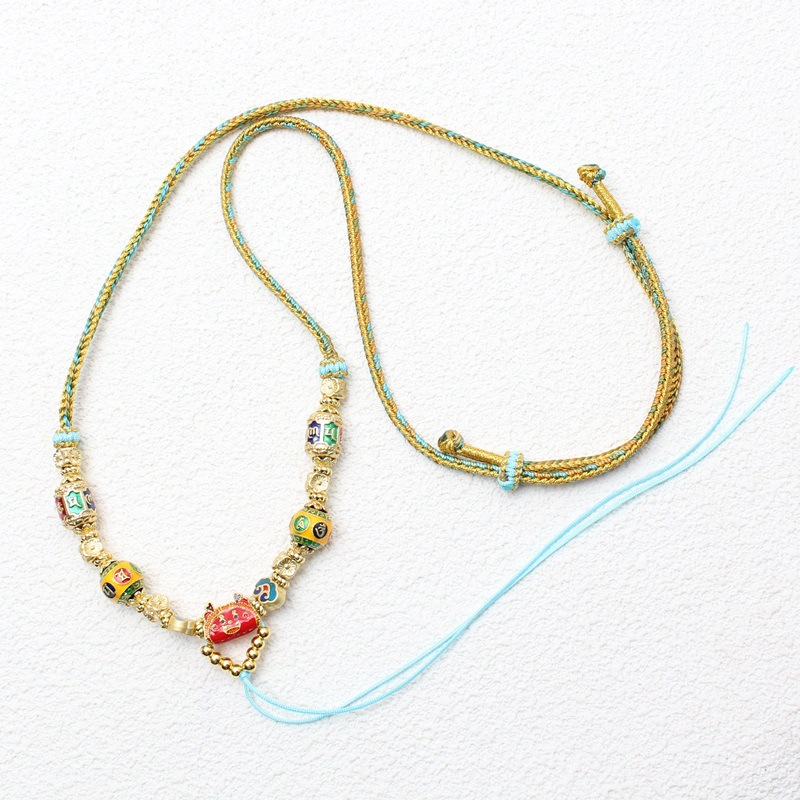 手織りチベット式ペンダントロープ五路財神桃花結びネックレスロープ唐卡文遊びストラップ調節可能