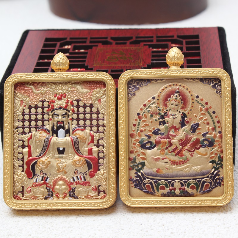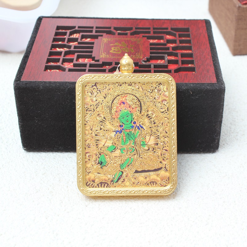 五台山五爺S緑度母唐カードペンダント真鍮金五爺手作り描金緑度母唐カードペンダント