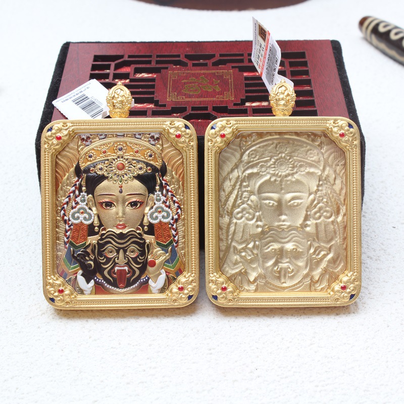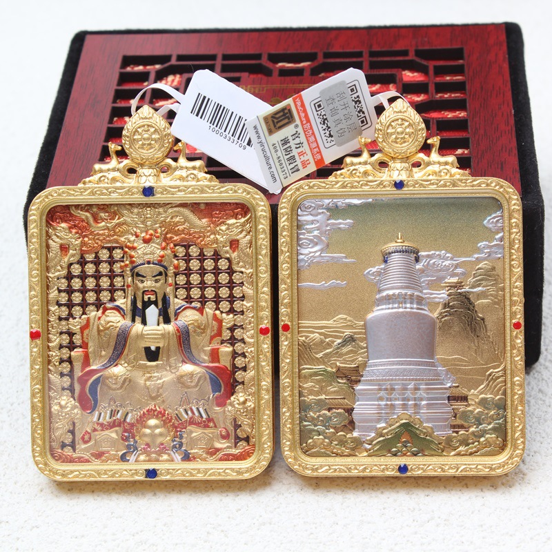 龍五爺S文殊大白塔両面立体唐カードペンダント両面立体真鍮金唐カードは色あせない