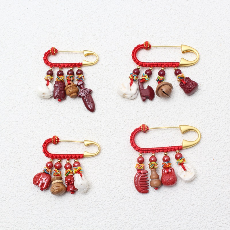 オリジナル高級手作りアクセサリーペンダント熊ピンアクセサリー桃木豚驚き骨朱砂子供ピン