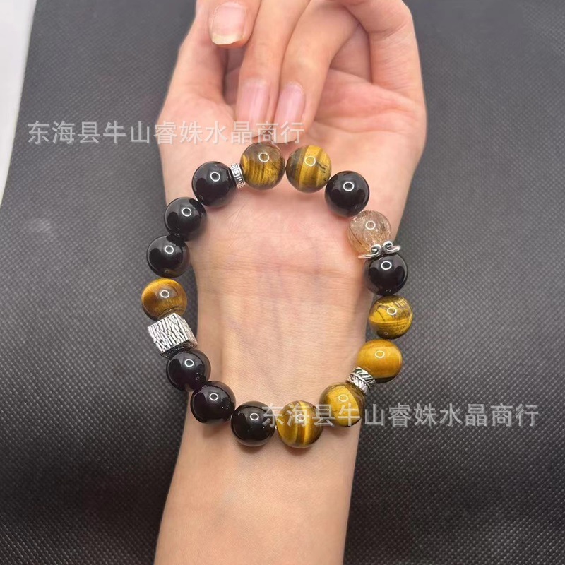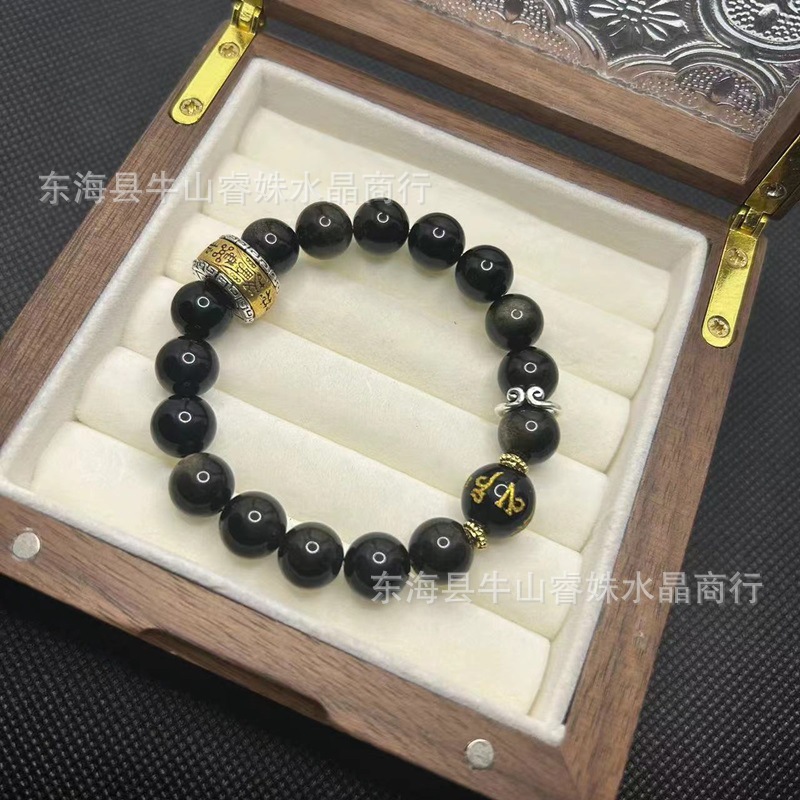 黒神話悟空天然黒曜石虎眼石単輪ブレスレット六字真言締め付け呪文男女手串卸売り