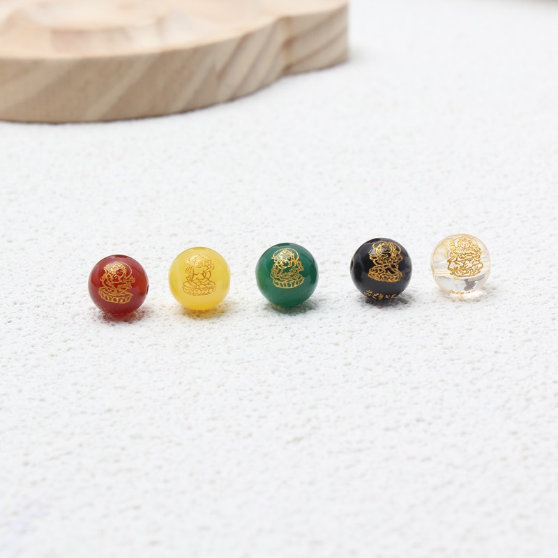 天然瑪瑙五路財神金珠黄赤白黒緑円珠財神散珠バッチビーズ卸売り