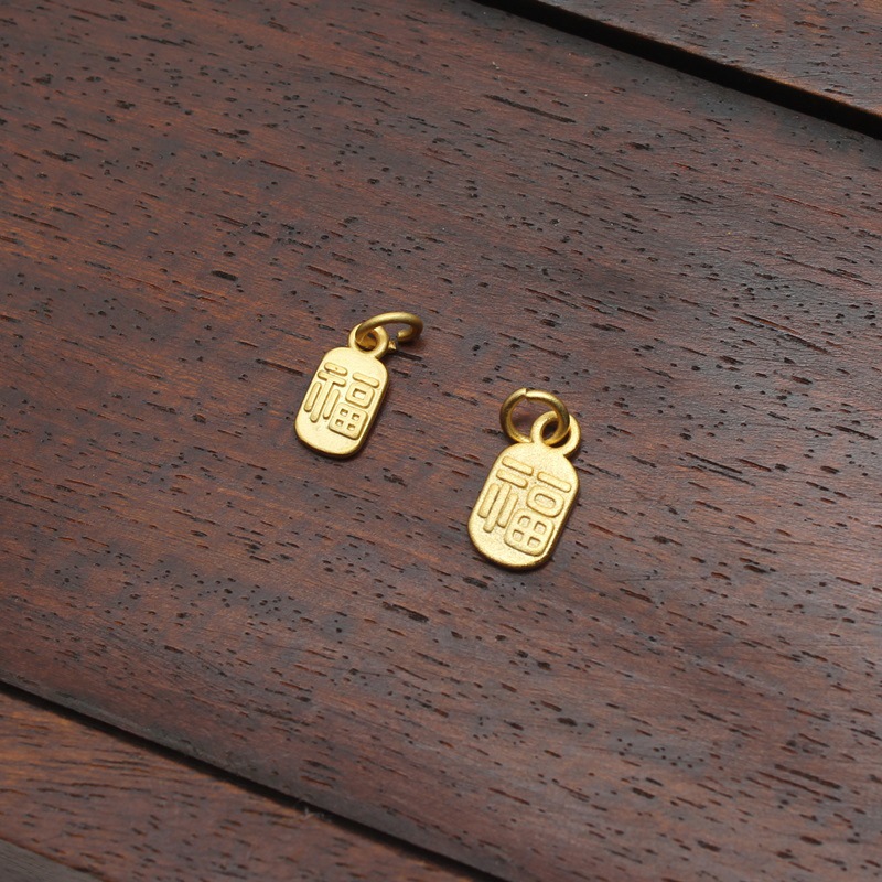 古法金アクセサリー卸売りブレスレットネックレスdiyアクセサリー保色復古風福字角型ペンダントアクセサリー
