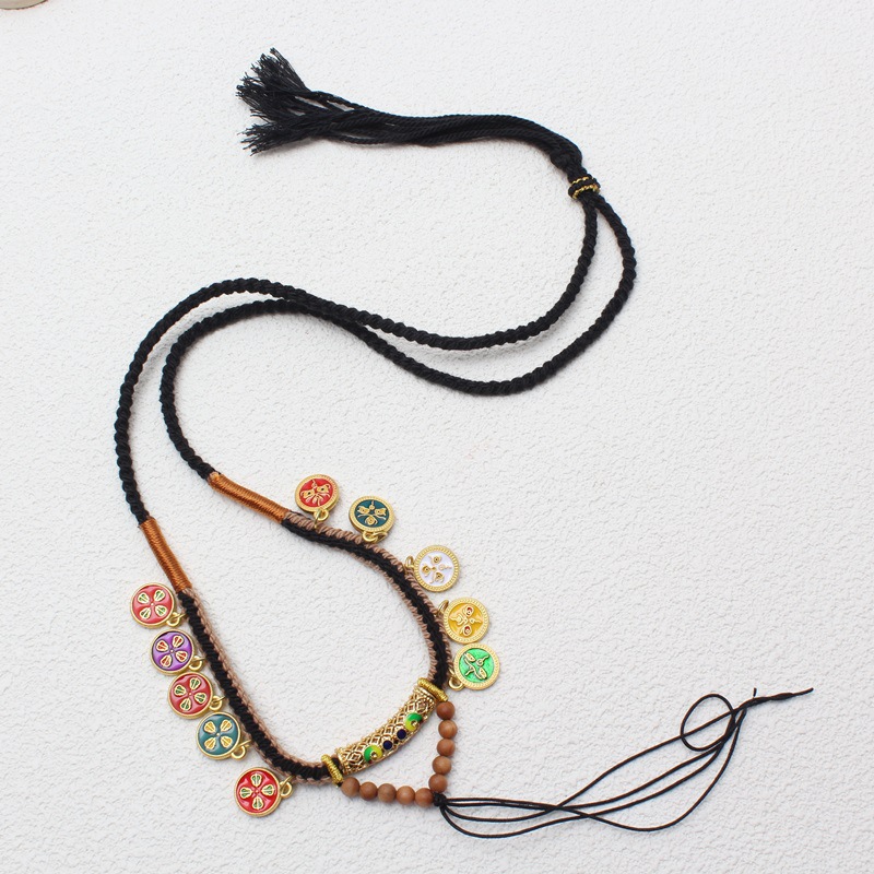 チベット式五路財神吊り下げロープ手編み五路財神唐卡仏牌五爺ペンダントロープ
