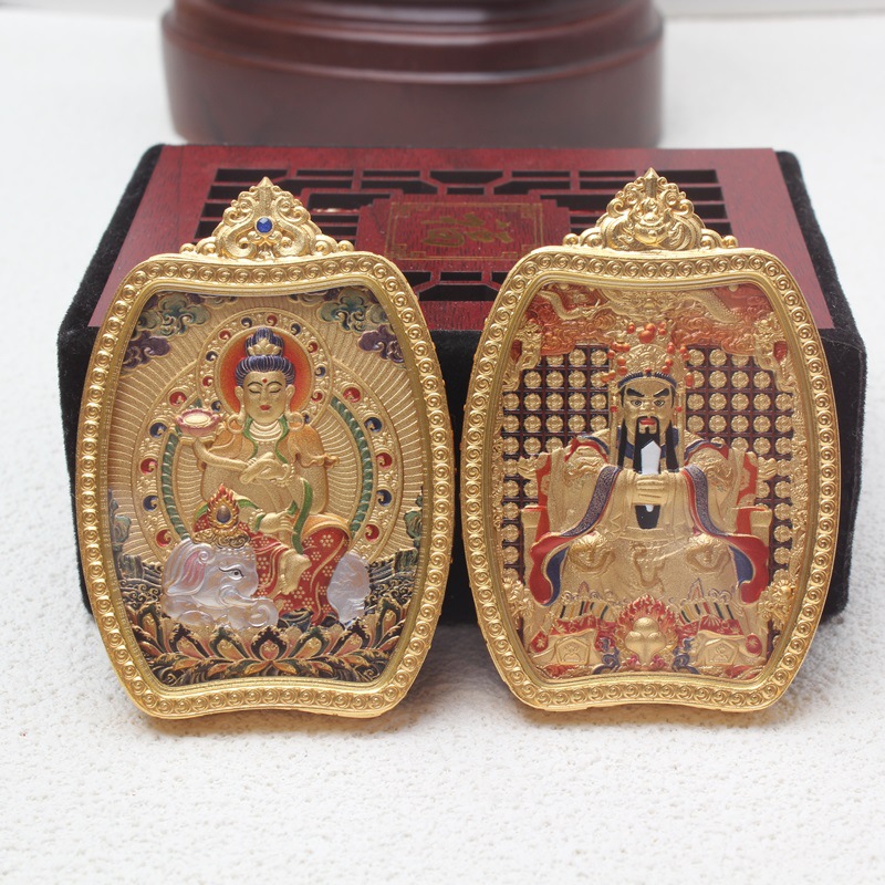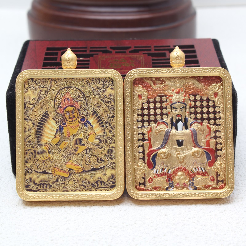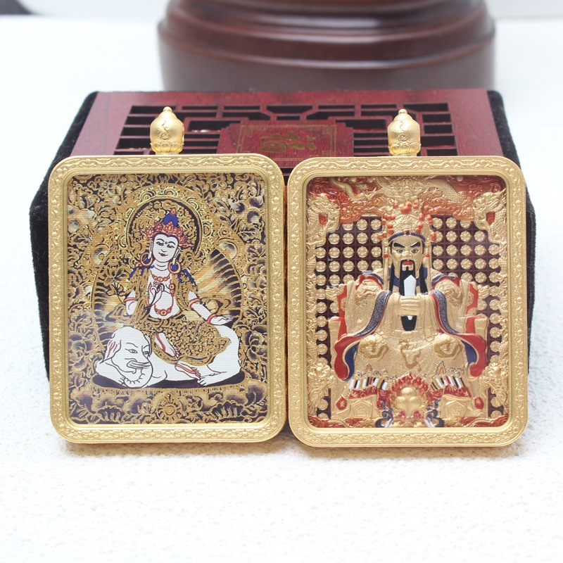 チベット式唐カード五台山五爺ペンダント両面文殊菩薩ペンダント五路財神唐カード両面描金