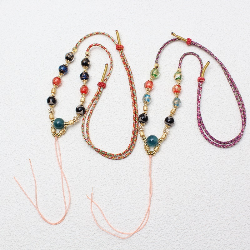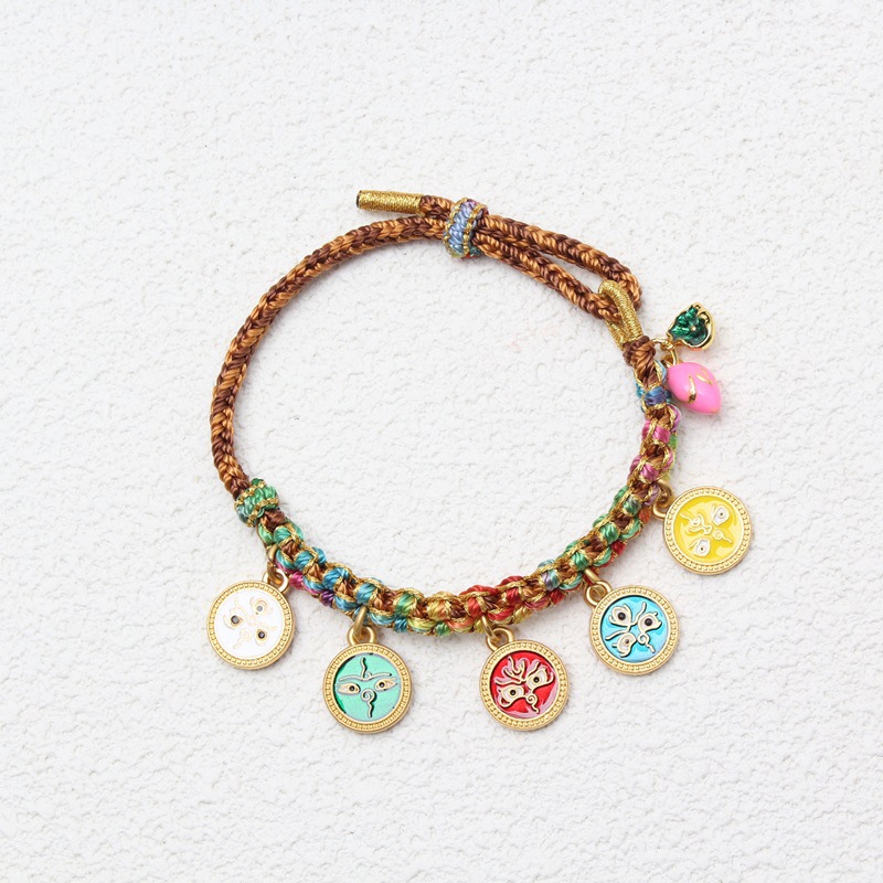 チベット式五路財神復古唐カードの手綱は手編み五路財神手串桃のブレスレットを調節できる