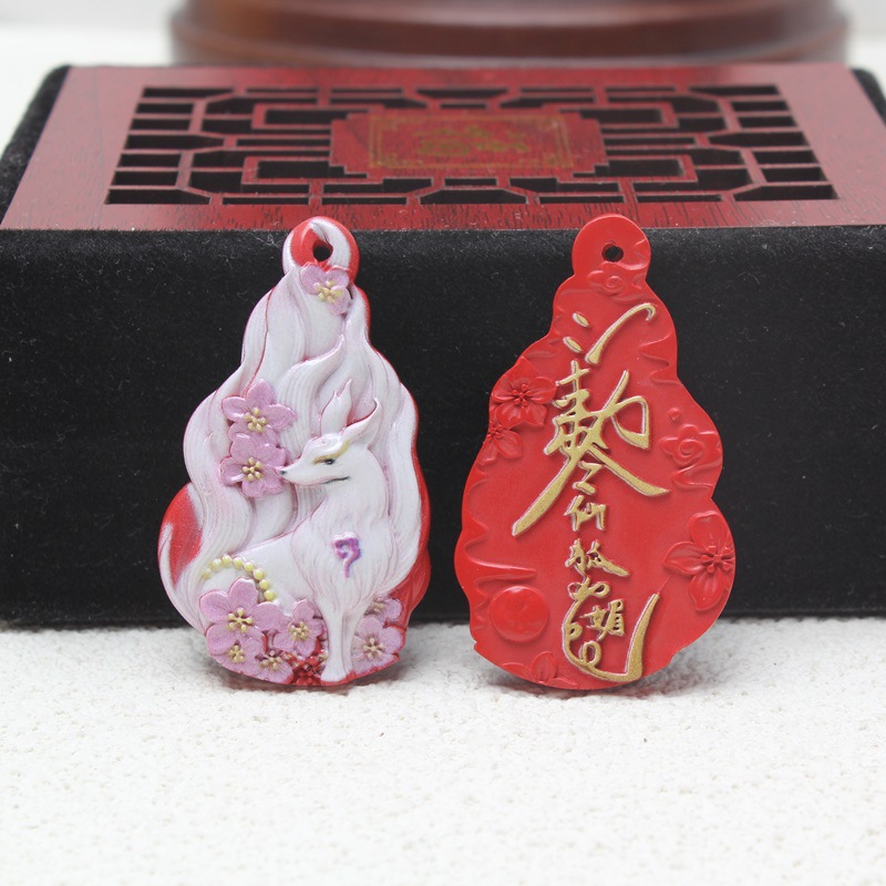 朱砂彩絵九尾狐ペンダントネックレスペンダント卸売り高含有量紅砂彩絵九尾狐ペンダント
