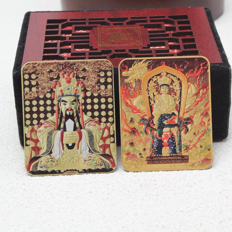五爺文殊金属仏カード銅カードチベット式唐カード両面金カードは携帯ケースに入れることができます。