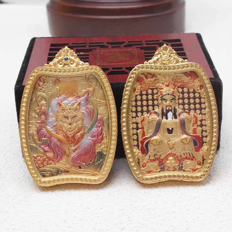 新商品五台山五爺唐カード九尾狐両面立体唐カードペンダント両面純銅金唐カードペンダント