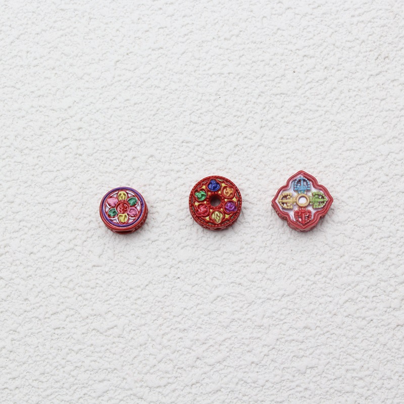 朱砂彩絵アクセサリー部品卸売り原鉱高含有量紅砂背雲落子回紋六子真言彩絵