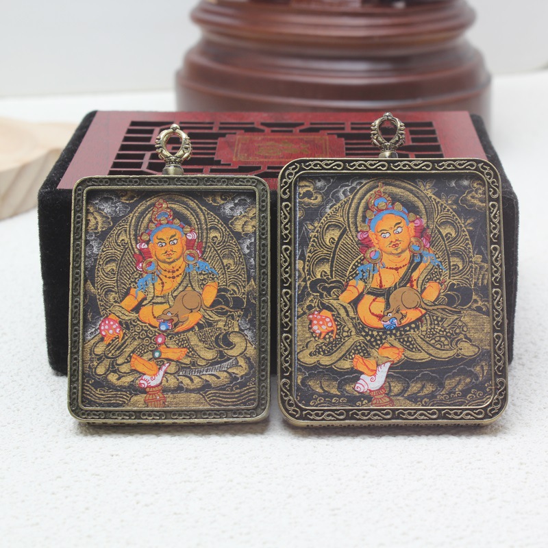 チベットの熱貢唐カードの手作りは黄財神のペンダントを描いています。