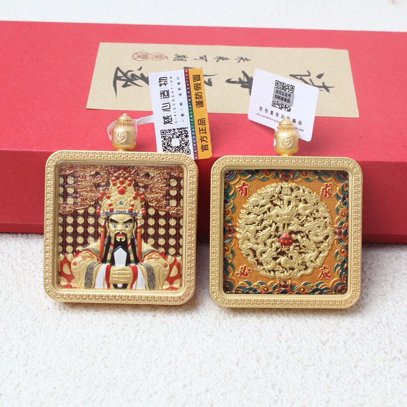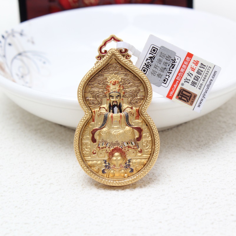 朱砂彩絵黄財神ペンダント卸売り原鉱高含有量赤砂彩絵黄財神ペンダントペンダント