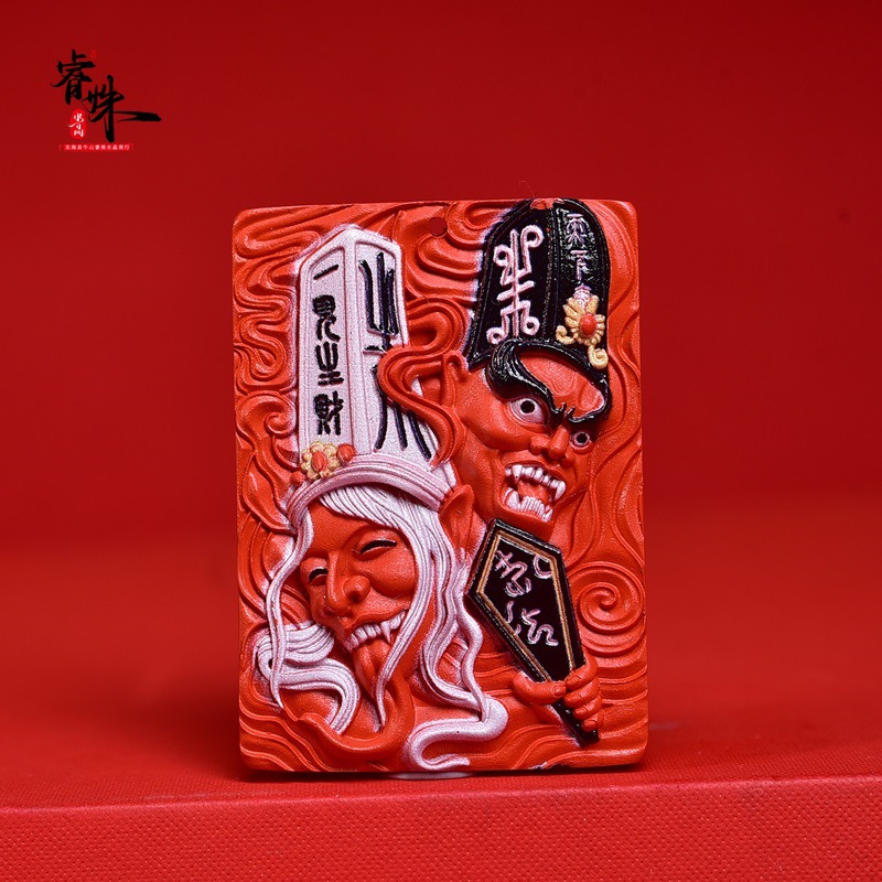 赤い砂の色絵の白黒無常の一生は財のペンダントの原鉱の高い含有量の赤い砂の色絵のペンダントを見ます。