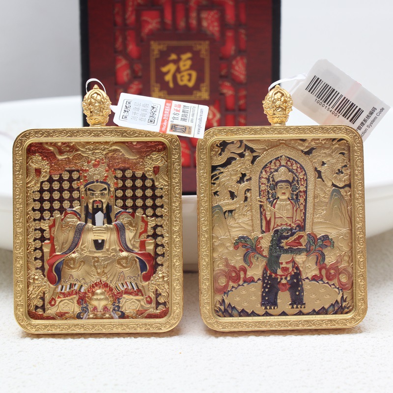 チベットチベット式唐カード五爺ペンダント両面文殊菩薩ペンダント五路財神唐カード銅金唐カード