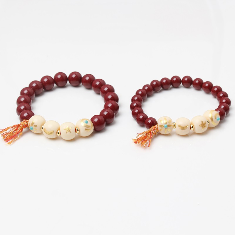 朱砂日月星ブレスレット卸売り原鉱高含有量紫金砂帝王砂日月星文遊び手串
