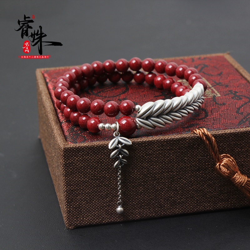 朱砂ブレスレット男女カップル999足銀麦穂ブレスレット手串原鉱高含有量紫金砂ブレスレット