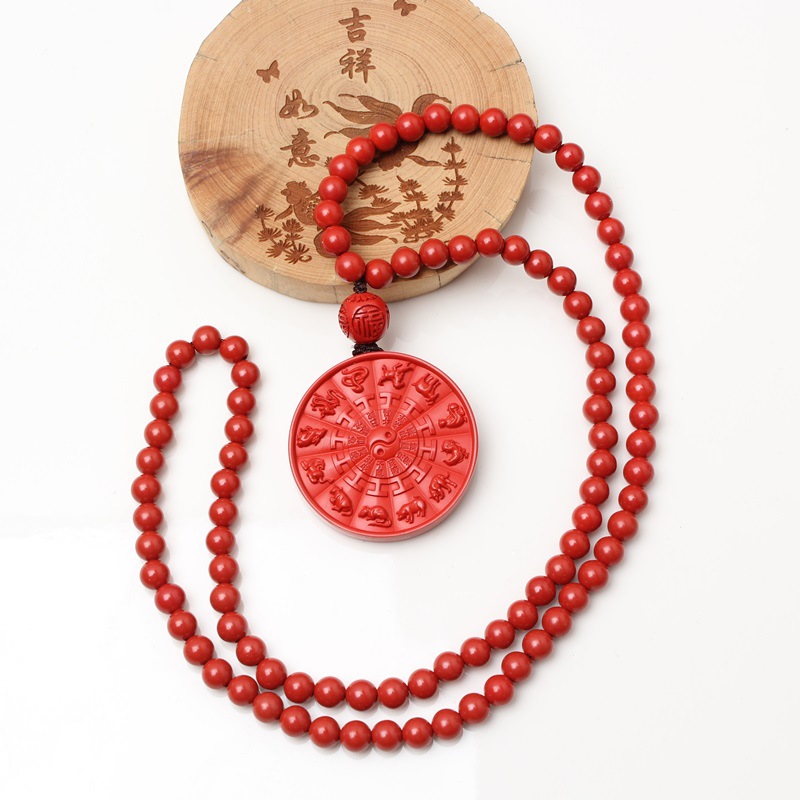 朱砂のペンダントのネックレスの毛の服のチェーンの高含有量の逸品の赤い砂の水は砂の12生肖の太極の八卦のペンダントを飛びます