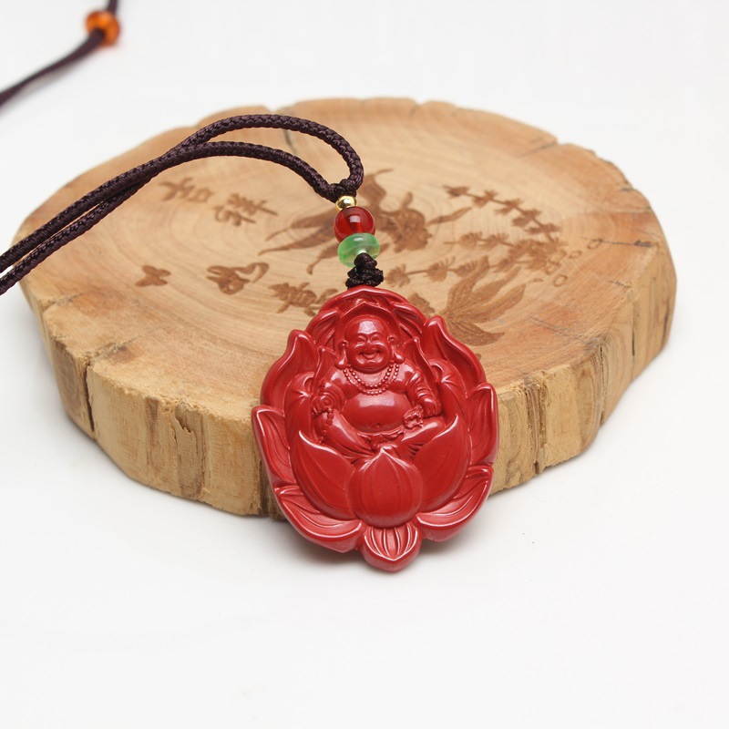 朱砂蓮の花弥勒仏ペンダントネックレス原鉱高含有量帝王砂蓮の花弥勒仏ペンダントネックレス