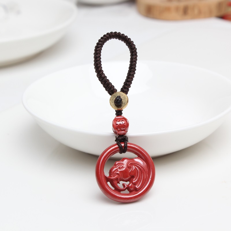 朱砂吉象如意キーホルダー卸売り原鉱高含有量帝王砂吉祥如意キーホルダーペンダント