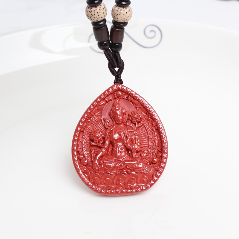 朱砂緑度母ペンダント高含有量帝王砂観音ペンダント緑度母ペンダントネックレス