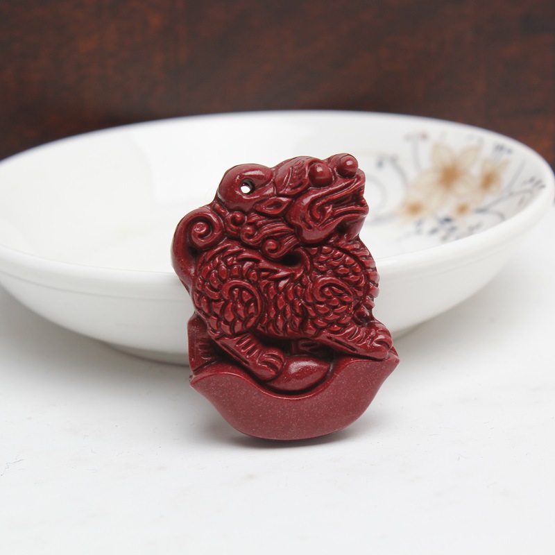 朱砂のペンダントの卸売りの原鉱の高含有量の紫金砂の両面の彫刻は無事です。