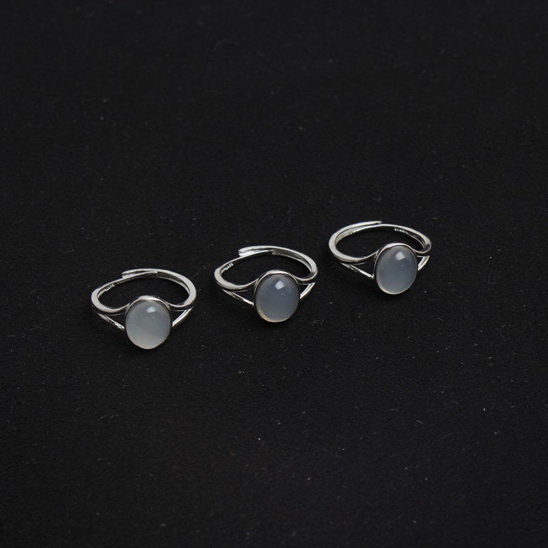メーカー卸売り白玉髄瑪瑙指輪活口デザインマーク925表面に穴がない玉髄指輪