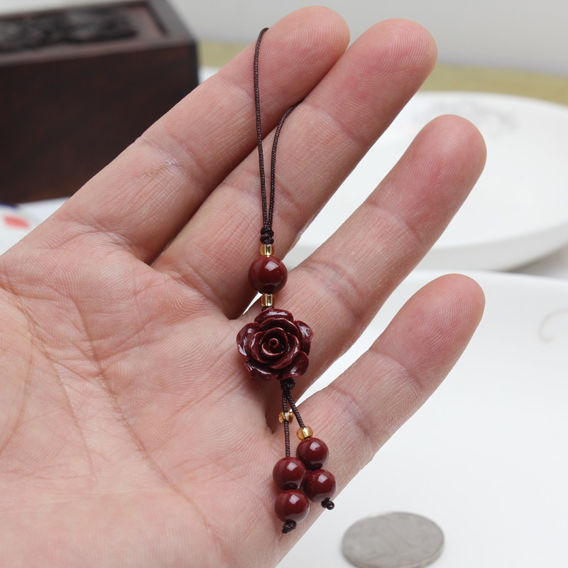 天然紫金砂花開富貴包掛キーホルダー高含有量朱砂携帯ストラップ手編みペンダント