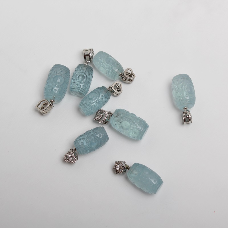 天然水晶卸売り天然海藍宝路通手作業彫刻回紋珠ペンダントネックレス鎖骨鎖