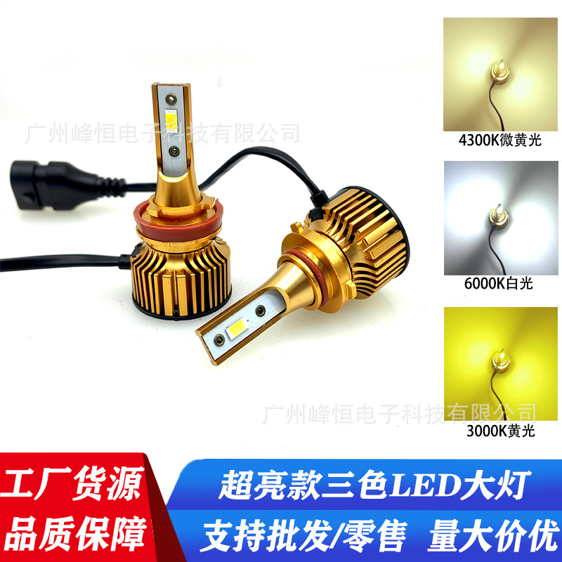 新型人気自動車LED電球前照明ヘッドライト三色フォグランプH11超亮集光9005遠近光灯