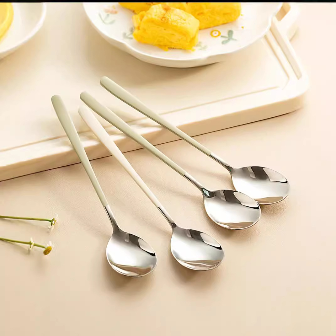 ミルクホワイト304ステンレススプーン家庭用食事スプーン韓国式小調羹スイカスプーン携帯食器