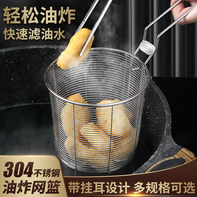 304ステンレスの揚げかごの茹で網のフライドポテトの軽食の揚げかごの油鍋の麻辣热の濾過網の濾過かご