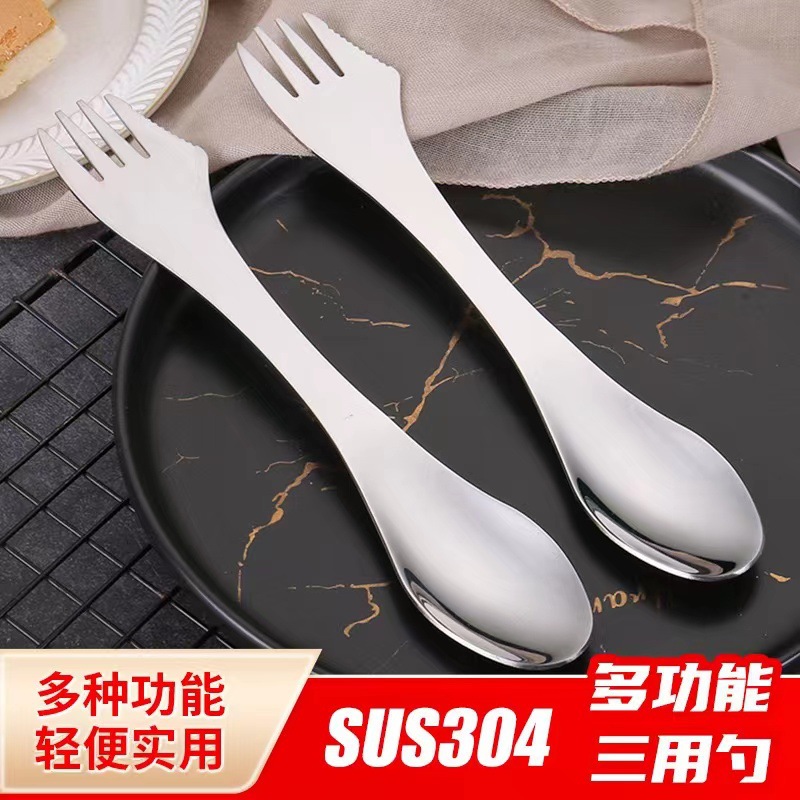 304ステンレス三用スプーン三合一多目的アウトドア食器旅行携帯ナイフフォークスプーン一体西洋食器