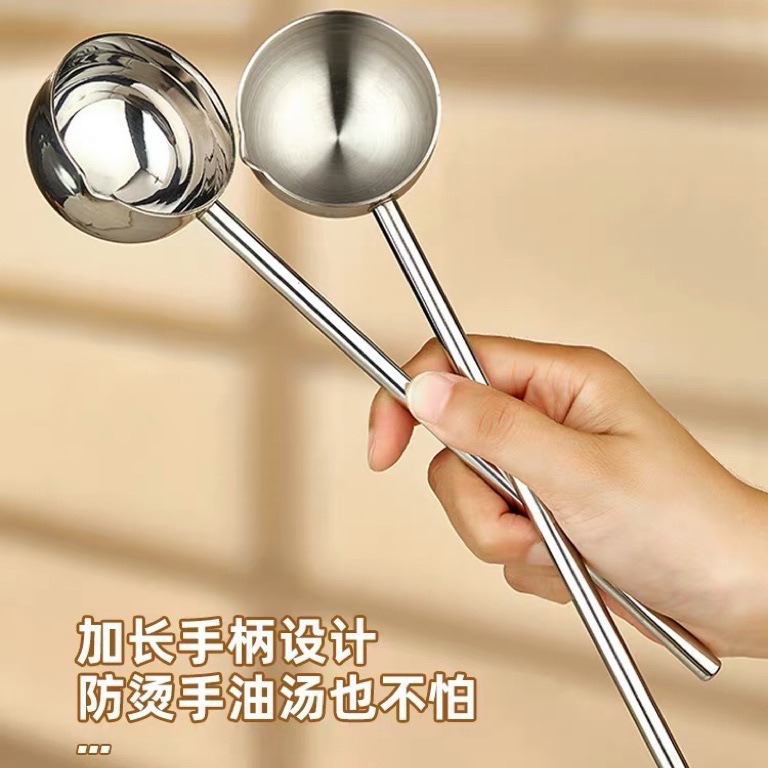 304ステンレス鋼ホット油スプーンスープスプーン長い柄飲むスープホット油小さいスプーンキッチン家庭用盛汁ミニ焼き油スプーン
