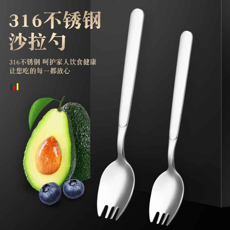 316ステンレスフォーク家庭用スプーンフォーク一体二合一両用子供パスタフォークサラダスプーン砂律フォーク