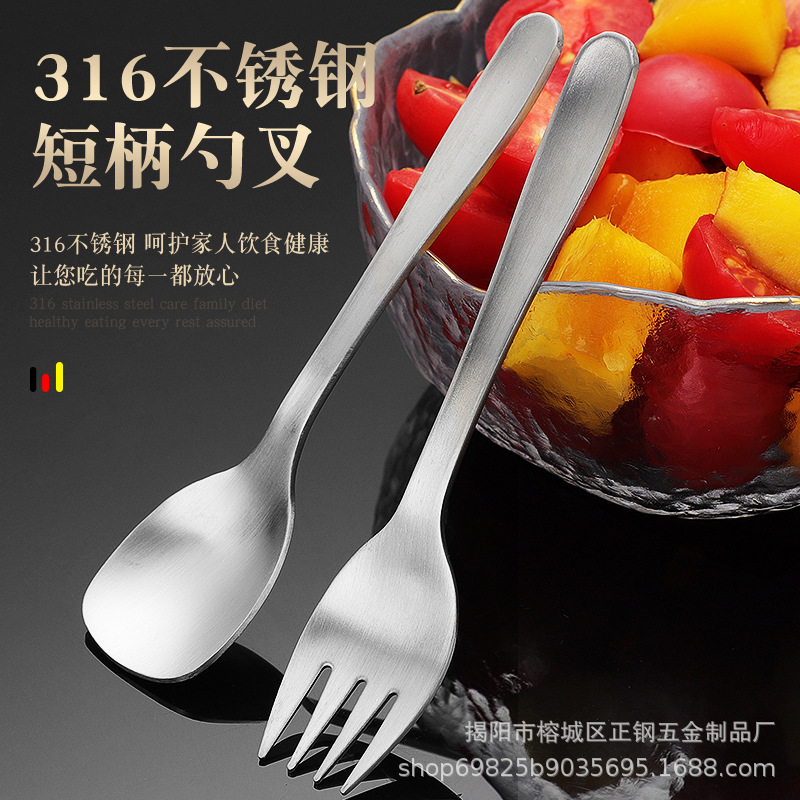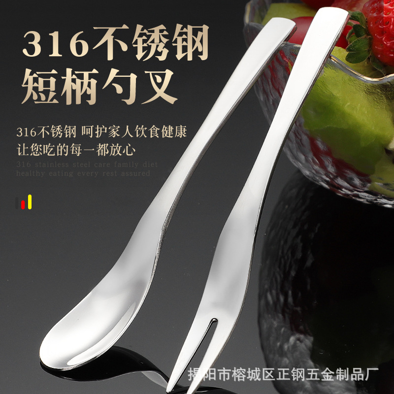 316lステンレス小さなスプーンコーヒースプーンデザートフォークスプーン攪拌スプーン短いスプーンフォーク調味料スプーン子供補助スプーン