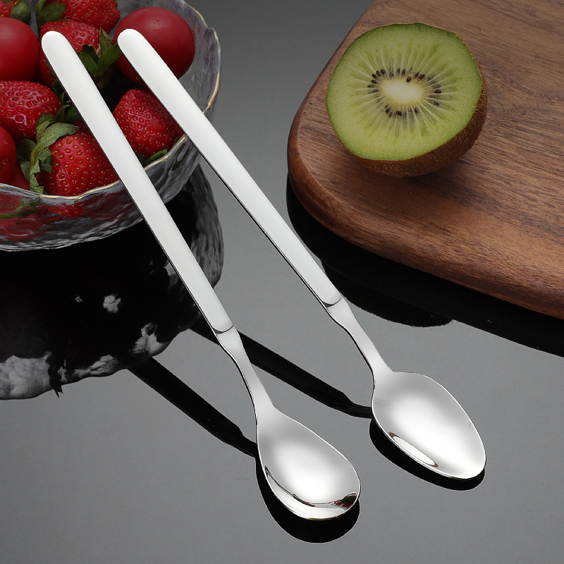 304ステンレス鋼韓国式攪拌スプーンデザートスプーンフォークコーヒー長柄スプーン家庭用蜂蜜スプーンステンレス食器