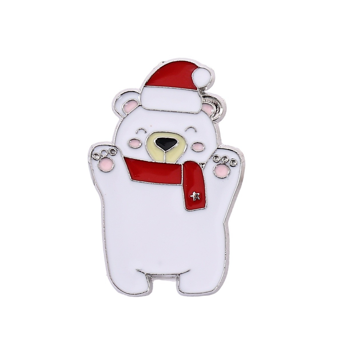 1 pcかわいいホッキョクグマ笑顔漫画帽子スカーフ冬スタイルブローチ