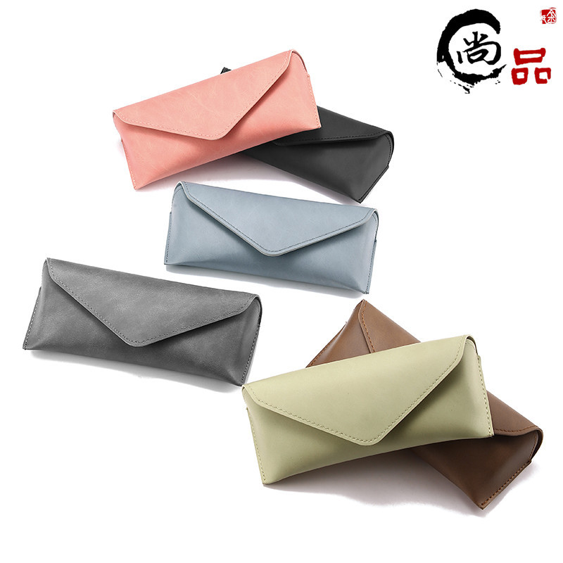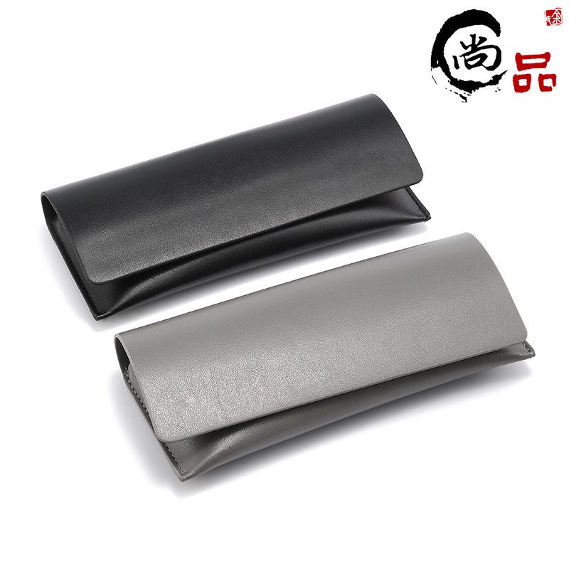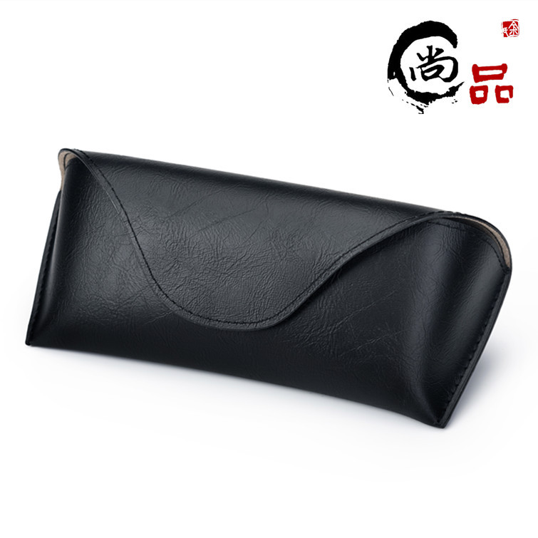 眼鏡ケース手作り三角黒色折り畳み眼鏡ケース小牛革サングラスケースpu皮質平光鏡ケース
