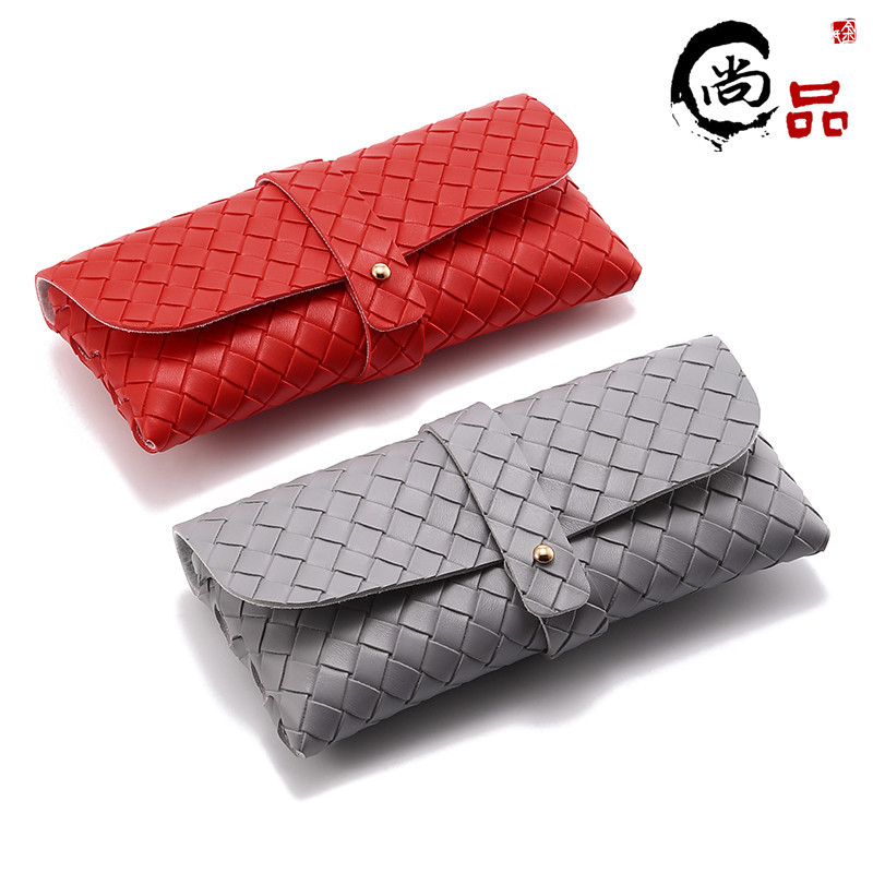 25新型編み紋釘留め金眼鏡ケース皮質サングラスケースPVC女性赤色サングラスケース