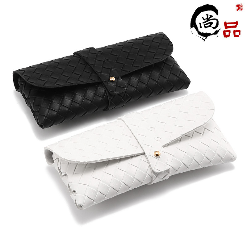 新型編みメガネケース女性ファッション大枠サングラスケース黒色ボタンソフトバッグサングラスケース卸売り