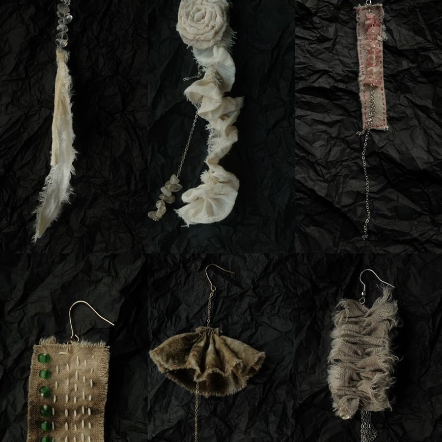 フリンジ植物染めスラックス白い綿麻レトロ草木染めイヤリング